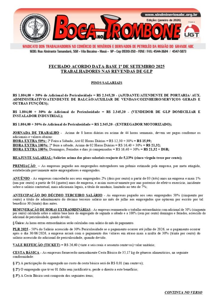 Boca no Trombone – Fechado acordo data-base 1º set. 2023 – Sergás