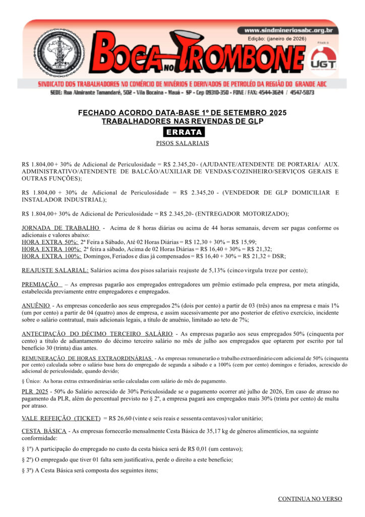ERRATA: Revendas de GLP: Fechado acordo data-base 1º setembro 2025